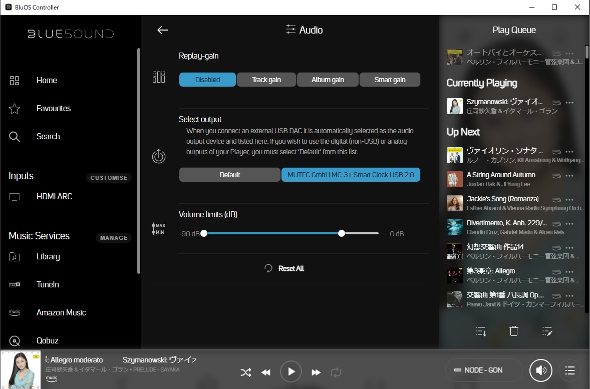 Although the USB digital output on Bluesound Node is designed to have a "fixed volume," it may have a "variable volume" depending on the USB DDC/USB DAC used. This occurs depending on the model, even if the USB device supports USB Audio Class 2.0.
