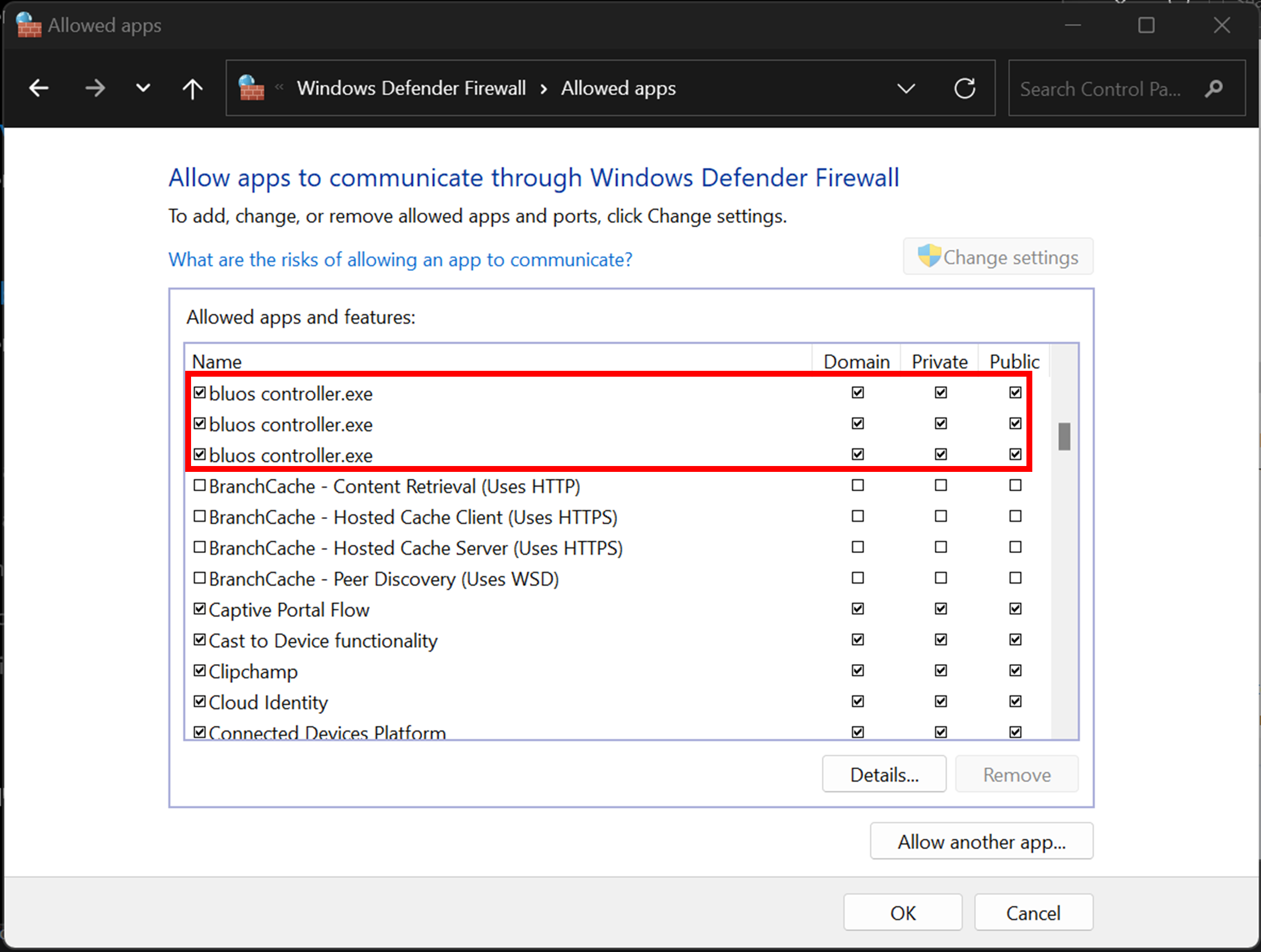 Is the Windows Defender (firewall) preventing the BluOS Controller App from detecting the Bluesound Players?