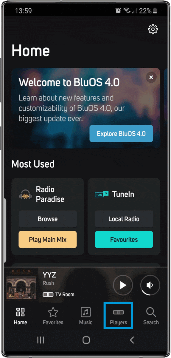 - Launch the BluOS Controller app.