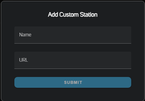 - In the pop-up window that appears, enter the Name you would like this station to appear as and the stream's URL (Internet Audio address1)) and click SUBMIT.