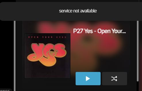 I am in the Playback folder and click a playlist to open the playlist (which in my case in fact is an album). When I click the blue button to start the music and clear the queue, a message "Service is not available" pops up. The music starts nevertheless, so there is no major harm.