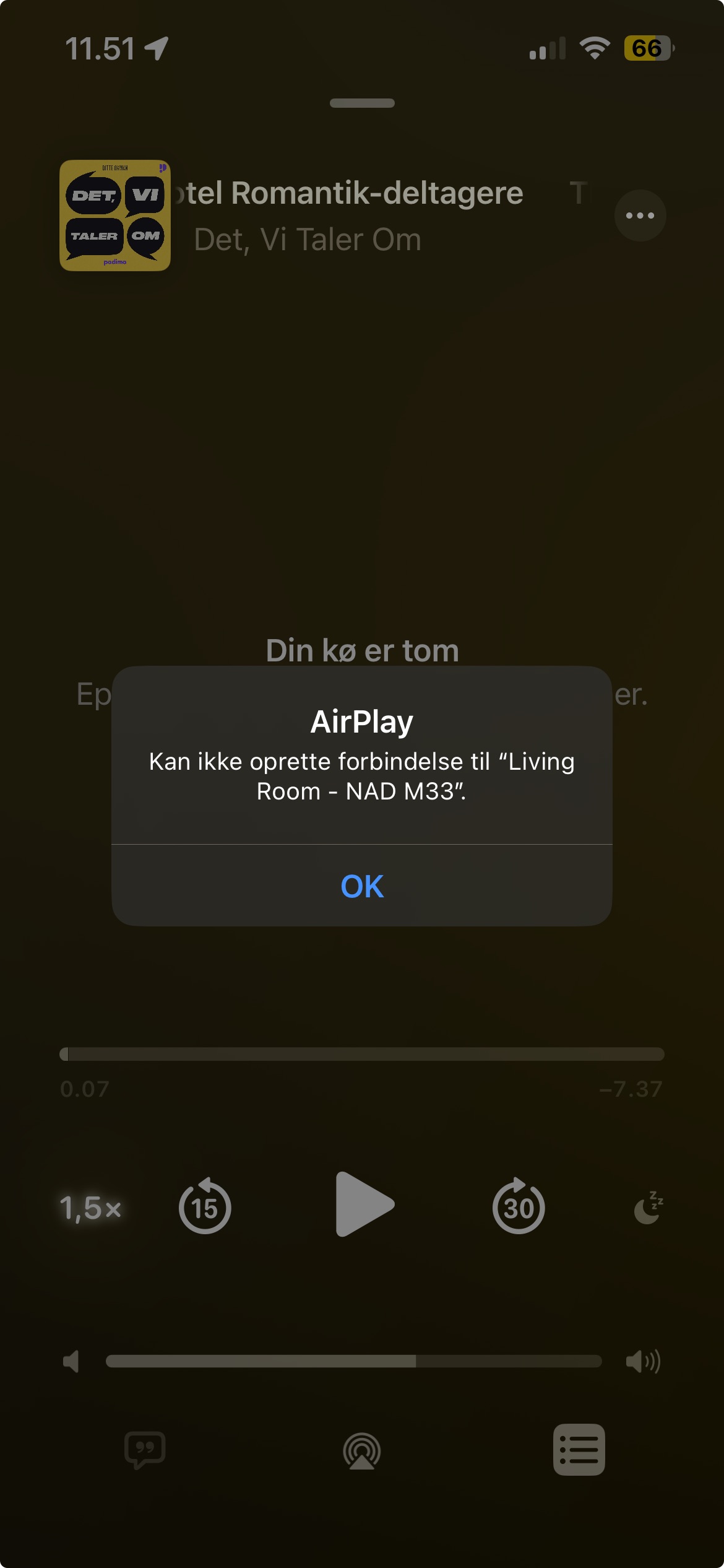 AnsweredAfter the recent update to BluOS 4.10.19, AirPlay never connects in first attempt on my NAD M33. Moreover, the AirPlay connection has become extremely unstable and drops off every 10-15 minutes of playing. This is extremely frustrating and isn't on par with what such a high-end player should offer of seemless connectivity.