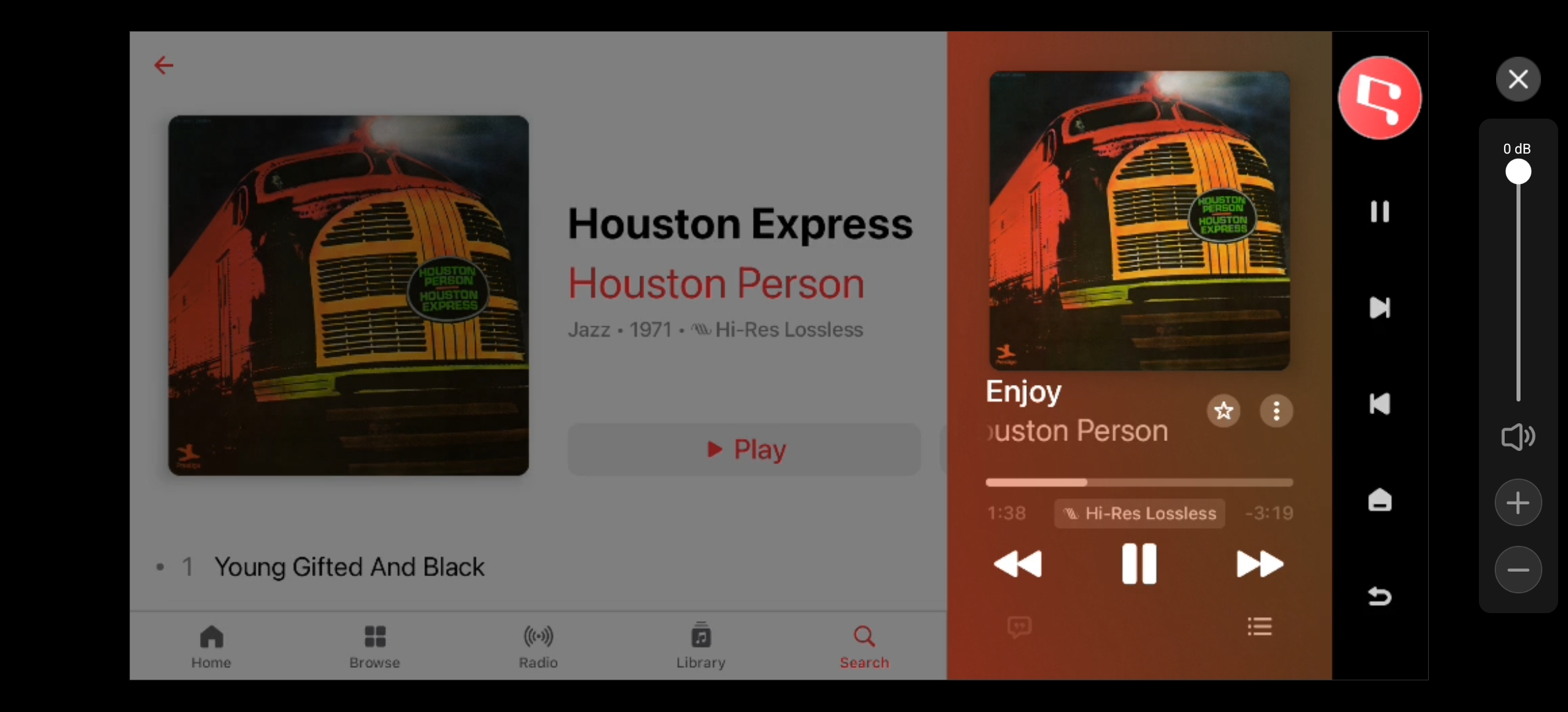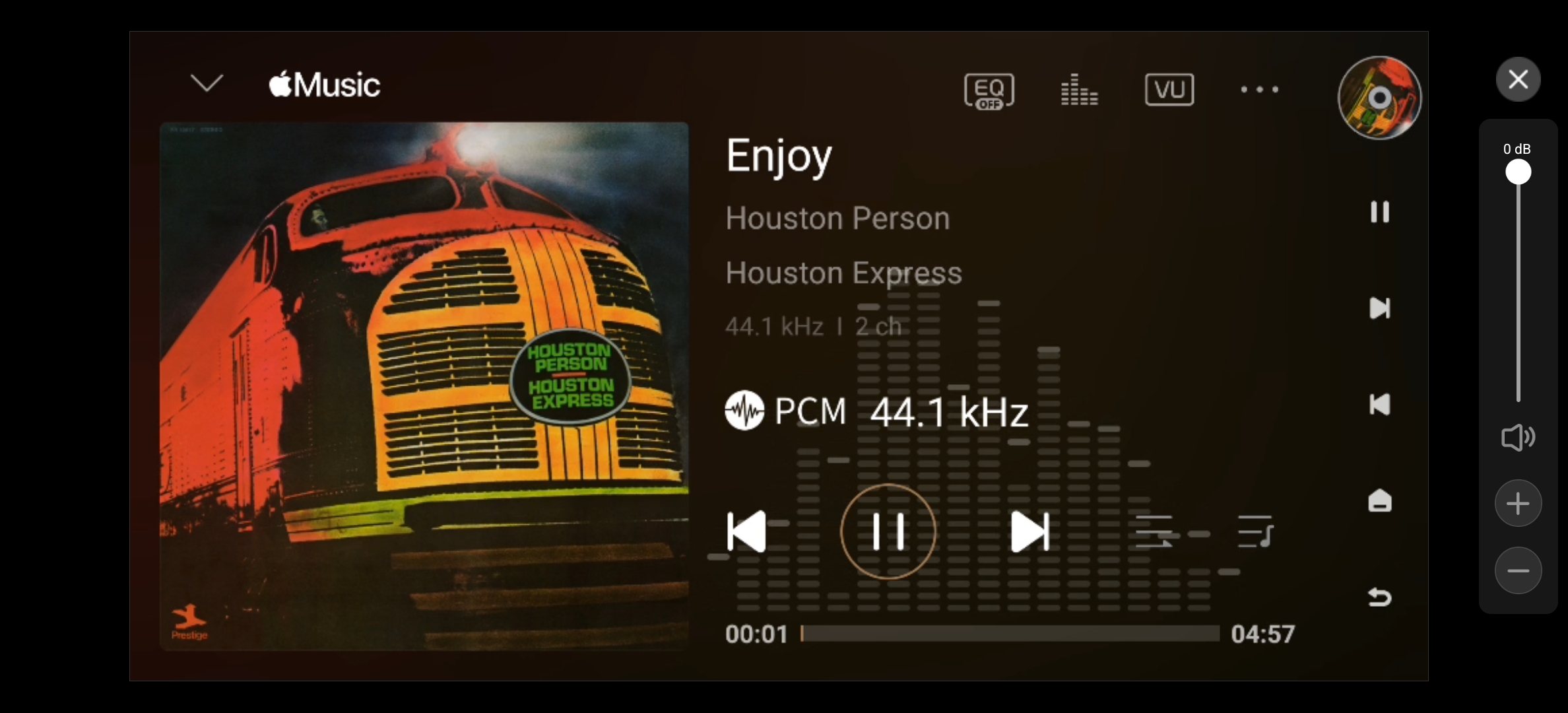 It also has a second app that you can download from the Google app store (I use android). This app is the exact same apple music app that you have on your phone - designed for portrait playback. So it looks a bit awkward on the landscape Eversolo screen and tiny too - but it delivers bitperfect hires lossless. Here is the same song as above played through the second app