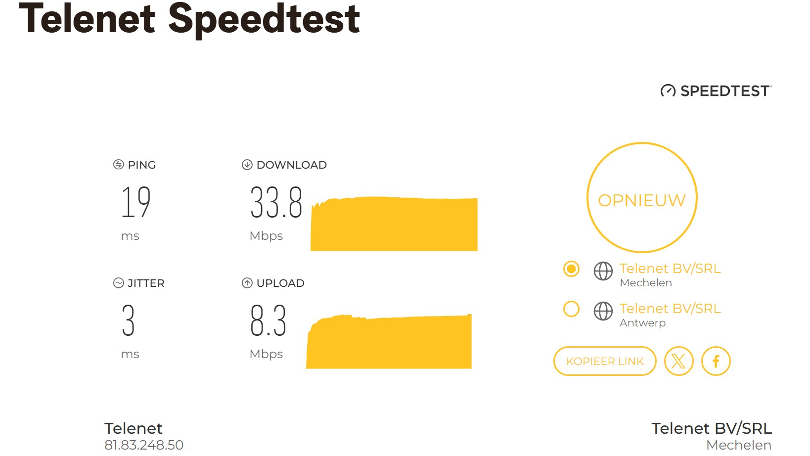 The Soundbar is connected to my tv with an optical cable. No network cable between the modem and the soundbar. The modem is less than a meter away from the soundbar, the subwoofer is directly beneath the soundbar and both Flexes are +/- 4 meters away from the bluesound, in the same room.