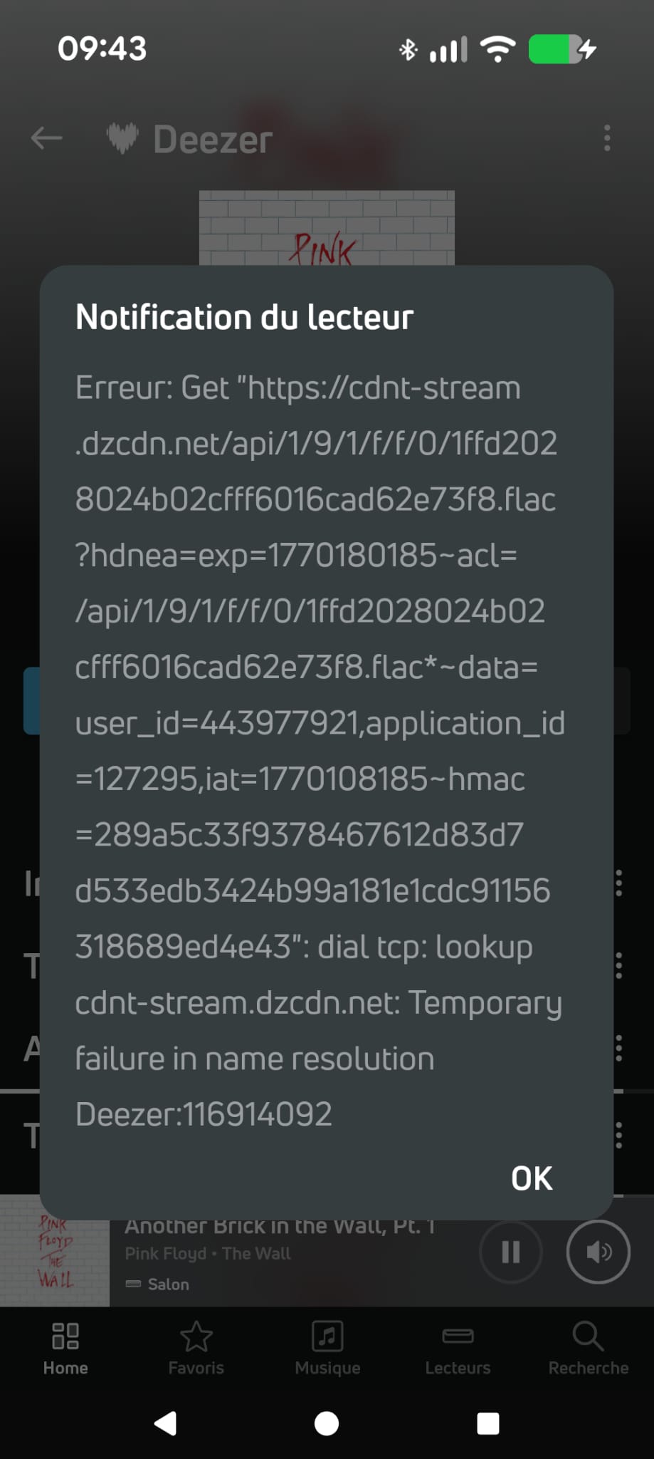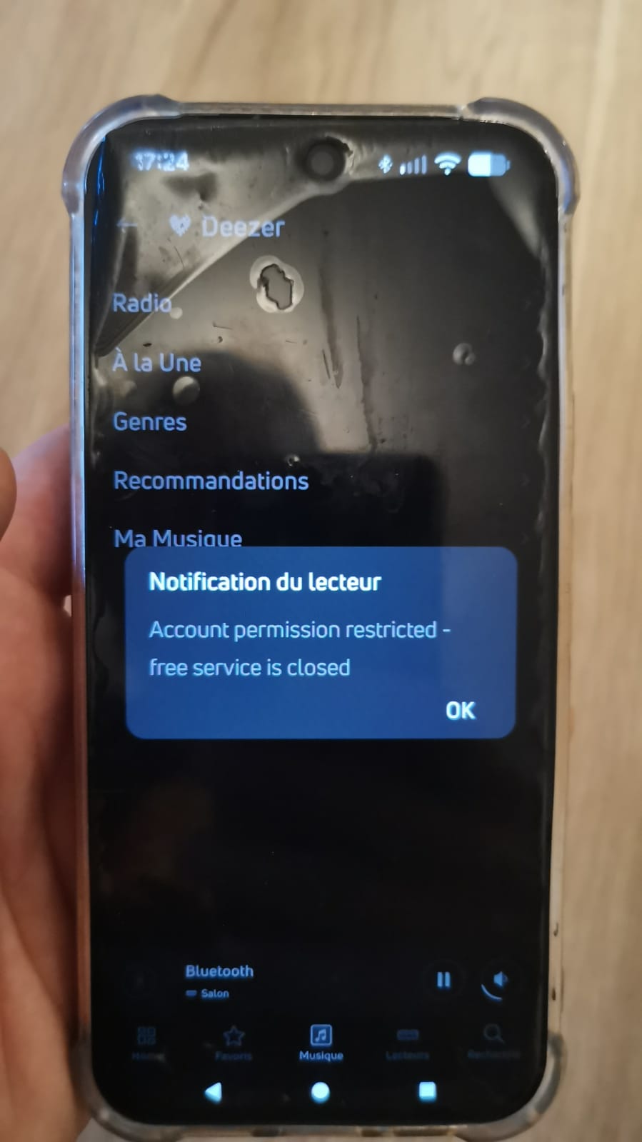 And after a reset of my Bluesound Nano, I tried again and it seems it doesn't let me connect to my deezer account from the BluOS App, I got this message and can't do anything unless i switch to Bluetooth mode and get my music through the Deezer app directly: